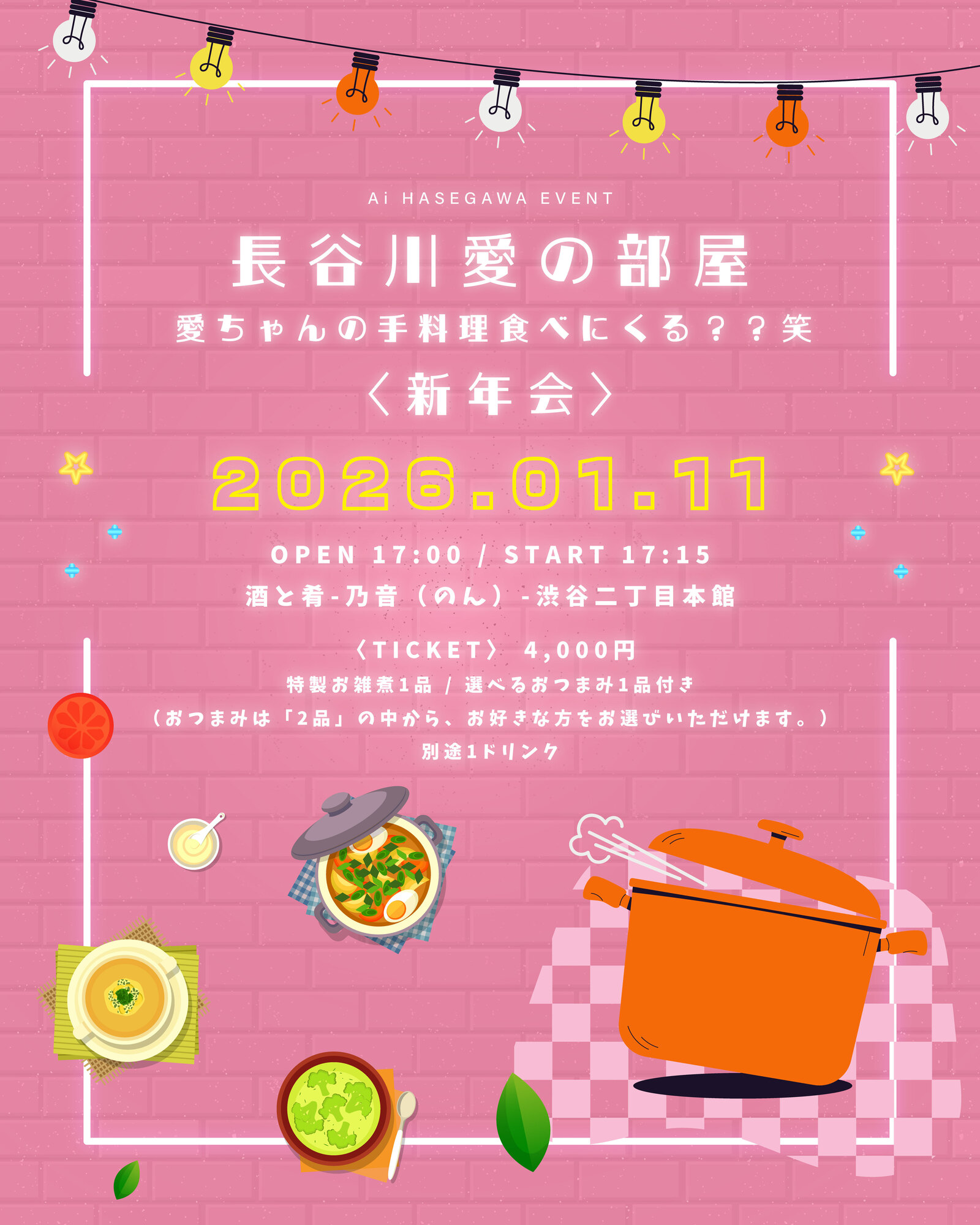 【EVENT】2026.01.11(日) 長谷川愛の部屋 愛ちゃんの手料理食べにくる??笑〈新年会〉