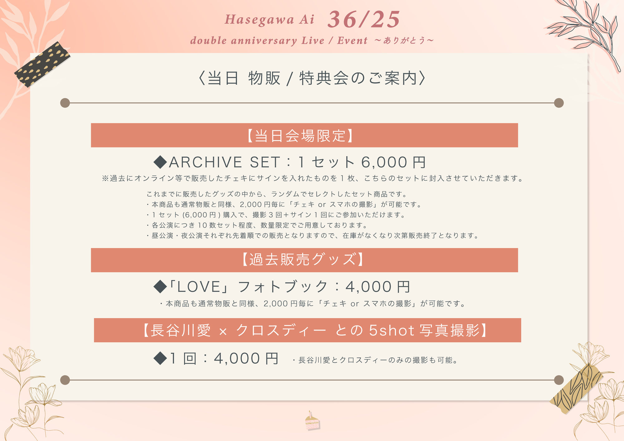 【当日物販 / 特典会のお知らせ】2026.02.07(土) Hasegawa Ai 36/25 double anniversary Event / Live 〜ありがとう〜